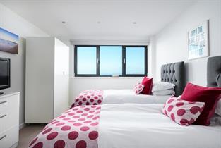 Light-filled contemporary apartment with views along the coast to Watergate Bay and beyond.