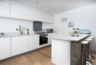 Spacious, modern kitchen with a breakfast bar. Fully equipped, including an oven, gas hob, fridge, freezer and dishwasher.