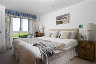 Overlooking Fistral beach, the master bedroom offers beautiful sea views.