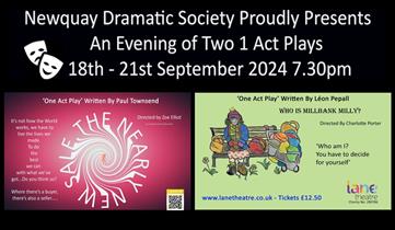 You are here: What's On > Newquay Dramatic Society presents An Evening of 2 One Act Plays @ Newquay's Lane Theatre 2024